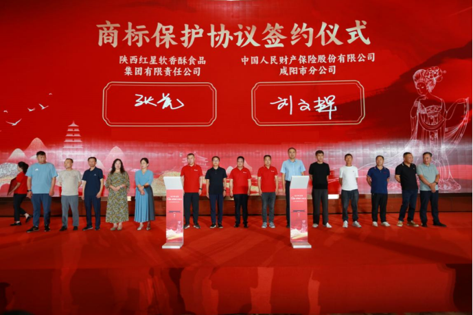7月16日,陕西红星软香酥食品集团有限公司举办新品发布会,在活动现场,公司负责人与人保财险咸阳分公司代表签订咸阳市首单驰名商标被侵权保险合同。
